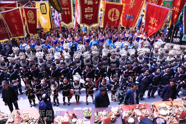 据悉,摆古节是瑶白村独有的以祭祀祖先、追忆民族历史为主题的传统节日。“摆古”为当地侗语,汉语直译为“叙说远古的历史”,该节日每年农历六月初六举行,“一年一小摆,三年一大摆”,今年适逢“大摆”之年。