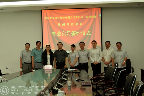 为进一步推进学生的实习工作,加强校企合作,7月16日,我校与中国农业银行贵阳市支行共同签署了毕业生实习基地协议。签字仪式在农行贵阳市支行会议厅举行,我校计财处处长曹克坚、经政学院党委书记周永杰、院长程艳萍;贵州农行营业部副总经理罗俊龙、农行甲秀支行副行长马千里等出席了签约仪式。
