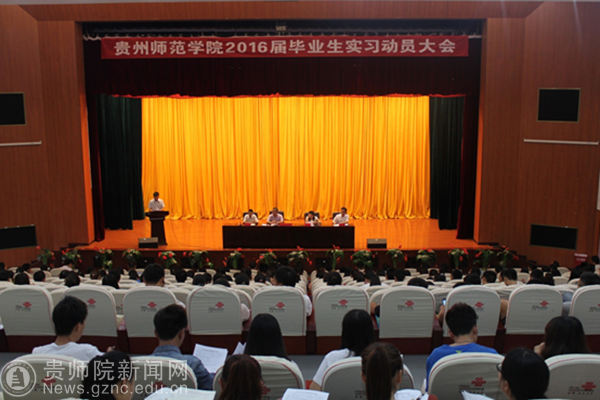 7月15日下午,我校在逸夫楼演播厅召开2016届毕业生实习动员大会,副校长郭文、教务处处长熊世桓、教务处副处长陈业强、继续教育学院副院长宋万琚出席会议,各学院分管实习工作领导、2016届毕业生辅导员和实习学生代表参加会议,会议由陈业强主持。