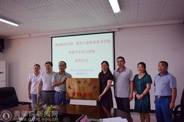 为加强校外实习基地建设,进一步推动人才培养及实践教学改革,7月13日我校经济与政治学院党委书记周永杰、教务处副处长陈业强一行前往贵州工业职业技术学院举行实习基地签约暨授牌仪式。贵州工业职业技术学院党委副书记杨丽芳、纪委书记罗荣桓及相关职能部门负责人出席了签约暨授牌仪式。