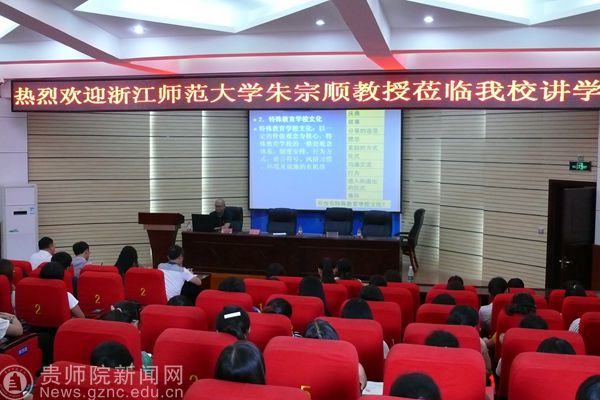 为营造学术氛围,加强学术交流,促进特殊教育专业的发展建设,7月12日下午,浙江师范大学杭州幼儿师范学院副院长朱宗顺教授应邀来我校作了题为“特殊教育学校文化建设”的专题讲座,本次讲座由科研处主办,教科院承办。教育科学学院院长刘红教授主持讲座,特殊教育专业及应用心理学专业的师生参加讲座并作交流。