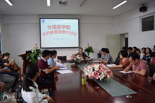 6月23日下午,外国语学院在学院会议室召开本科教育思想大讨论——更新教育观念改革教育方法专题研讨会。本次研讨会分为英语专业和大学英语两个组进行,分别由副院长杨秀岚和罗泳主持,学院全体教师、辅导员及学生代表参加会议。