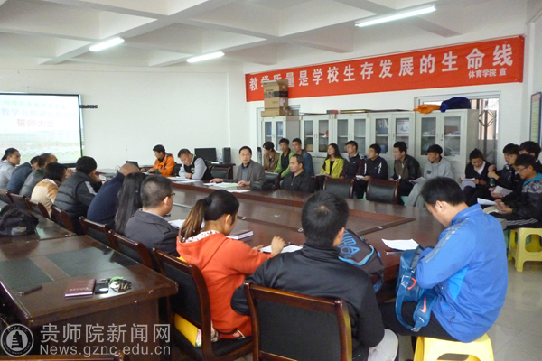 首先,黄天明就学校定位“一型两性”——应用型、地方性、师范性进行解读。学校举办办学定位大讨论,非常重要,是一次对万象城网页版办学定位的重新认识,也使全校广大教职工充分清醒认识学校办学定位。我校作为应用型地方性师范性高校,办学定位更要突出应用型人才培养,突出为地方经济与社会发展服务。接着,在场的教师职工积极发言讨论,针对体育学院如何培养体育应用型人才、体育应用人才培养模式、加强我院学生的师范性水平等问题进行了讨论。老师们认为:体育教育专业要从体育基本理论、体育基本技能、体育从业相关资质、中小学体育教学技能等方面加强教学,为贵州基础教学培养合格的中小学体育教师,才能体现了我校“一型两性”的办学定位在体育教育专业办学定位与培养目标。