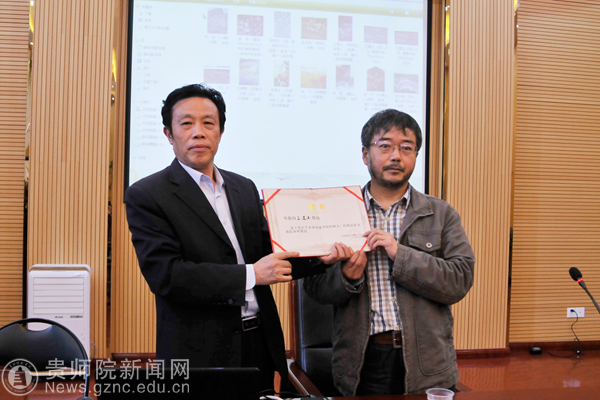 讲座过程中,王建山展示了第十二届全国美术作品展贵州选拔获奖作品,并对展览的优秀作品进行点评,分析获奖作品如何能突破重围入选全国美展,精彩的点评使师生受益匪浅。同时,他也分享了自己在绘画过程中的心路历程。