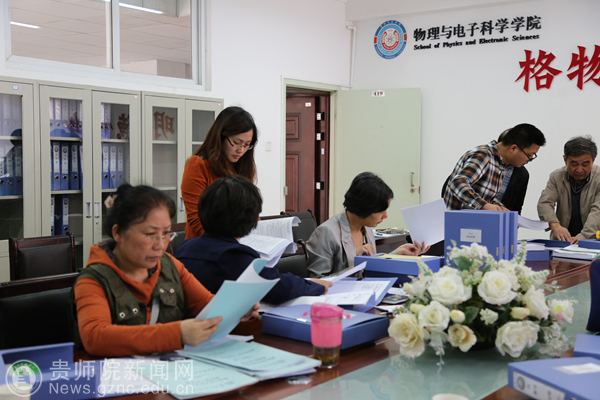 4月17日下午,万象城网页版校内评估专家到物电学院检查指导课程建设评估工作,物电学院党委书记王平瑞、院长周筑文、党委副书记何毅、副院长熊德永及物电学院各评估资料组组长参加评估会议。