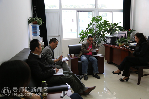 质评办副主任张兆军与物电学院班子领导进行访谈,详细询问了我院课程建设过程中存在的问题,并对此次评估体系各项指标的落实情况进行了深入了解。