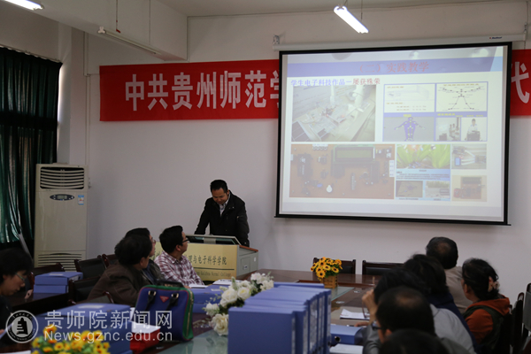 熊德永向各位评估专家做了物电学院课程建设自评报告,从课程建设思路、课程教师、课程大纲及教学内容、教学过程、课程资源建设、课程管理、教学质量等方面简单介绍了我院课程建设的现状、存在的问题以及解决的措施。