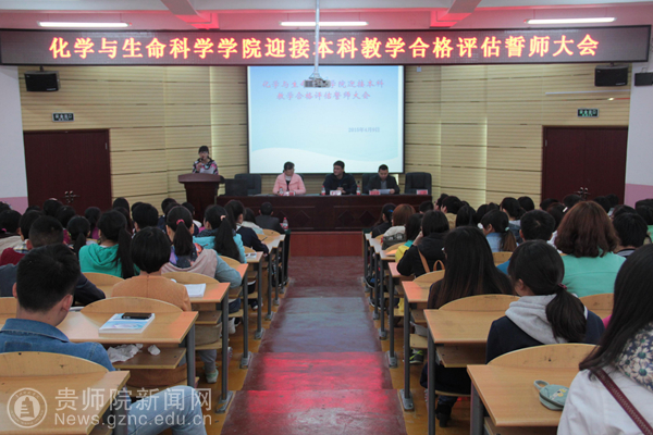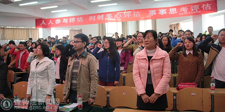 4月9日,化生学院在宁静楼152会议室隆重召开迎接教育部本科教学合格评估学生誓师大会,大会的目的是动员化生学院广大师生以更新的精神面貌、更高的工作热情、更足的工作干劲、更强的使命感和责任感,投入到迎评工作之中,形成全院上下人人关心、人人参与、人人有责的良好氛围,扎扎实实做好本科教学评建工作。学院党委书记韩宝银、副书记干正洋、副院长任翠娟出席大会并作重要讲话。团委书记周旭清,辅导员代表梁涛、李育芳、吴光梅、易文实,教师代表韩晗、陈生科、王万强以及学生会和班委代表参加了会议。会议由学生代表郭婷主持。