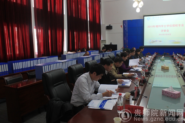 3月30日下午,我校2015年增列学士学位授权专业评审答辩工作会议在学校第一会议室召开。专家评审组由贵州大学、贵州师范大学等高校的专家组成,贵州师范大学副校长赵守盈教授担任组长。我校校长李存雄、副校长郭文以及学校学位评定委员会委员参加会议,会议由校学位委员会办公室主任熊世桓主持。