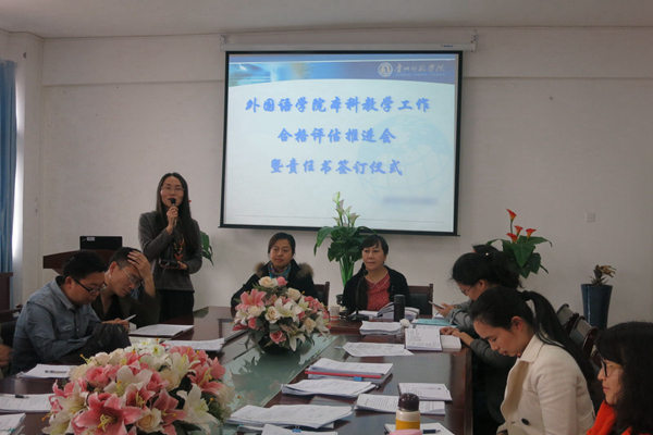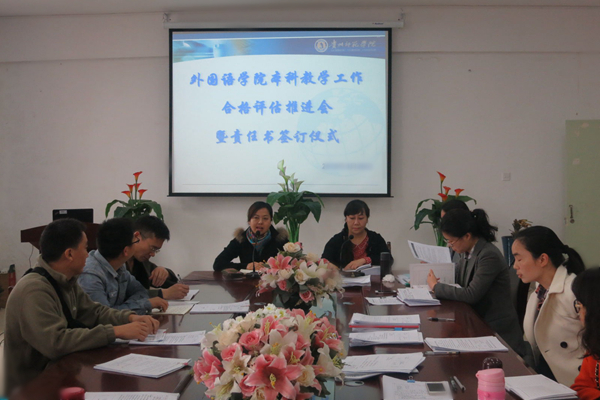 3月27日下午,外国语学院全体教职工在外国语学院会议室召开了本科教学工作合格评估推进会并签订迎评工作责任书,学院党委书记张瑶主持了会议。