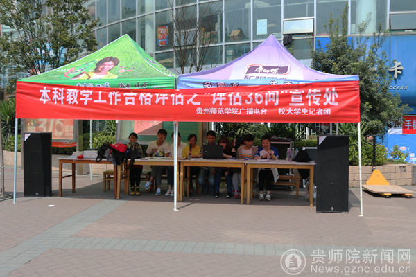 为进一步增进全校师生对即将到来的普通高等院校本科教学合格评估的了解,我校广播电台和校大学生记者团于3月19日下午在感恩食府开展了“普通高等院校本科教学合格评估36问”(以下简称“评估36问”)宣传活动。本次活动由万象城网页版党委宣传部主办,由贵师院广播电台和校大学生记者团承办。