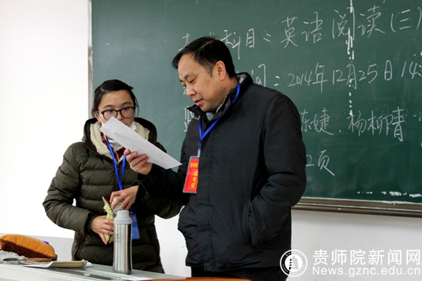 12月25日下午,副校长令狐荣锋在教务处副处长王波等陪同下对我校文韬苑期末考试考场进行了巡考。
