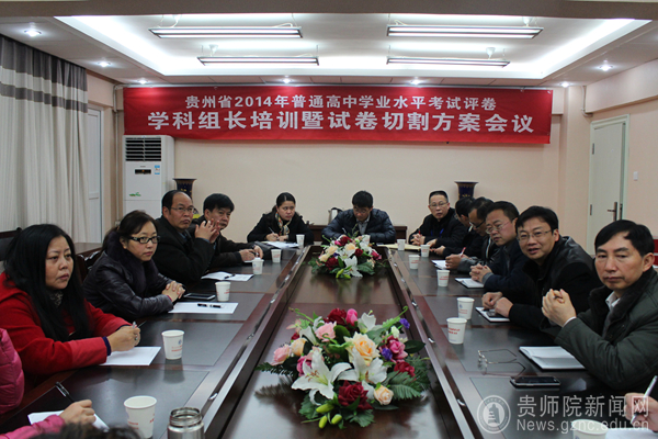 继续教育学院副院长王先华就2014年12月贵州省普通高中学业水平考试评卷工作做了详细安排,要求各学科评卷组组长,做好评卷质量监控,有问题及时发现、及时解决。最后,各评卷学科组长与试卷命题专家,就试题评卷切割方案进行了讨论。