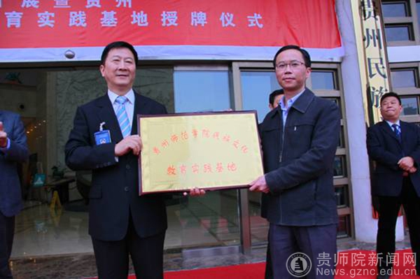 在授牌仪式上,熊世桓对贵州省民族文化宫大力支持我校教育实践基地的建立表示感谢,并对贵州民族博物馆为我校提供的“第二课堂”的文化艺术教育实践环境给予高度评价。建设文化艺术教育实践基地是实现我校应用型人才培养目标,加强学生学习和实践创新能力的重要举措,也是加深学生对民族文化的情感重要途径。文化艺术教育实践基地建立是我校实践教学工作方面迈出的新的一步,为我校文化艺术专业学生提供了良好的校外学习实践场所,贵州民族博物馆为我校搭建第二课堂的教育平台,必将为我校文化艺术教育和专业发展注入生机和活力。