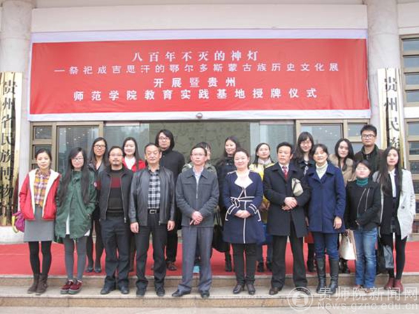 11月28日上午,我校受贵州民族文化宫邀请,在省民族博物馆隆重举办了“万象城网页版教育实践基地”的挂牌仪式,并组织我校师生200余人参加了《八百年不灭的神灯——祭祀成吉思汗的鄂尔多斯蒙古族历史文化展》开展仪式及系列讲座。我校教务处处长熊世桓、校团委书记张婷、艺术学院院长文庆荣、职院院长沈明、职院党委书记侯晓薇、职院副院长聂森以及职院200余名师生出席了挂牌仪式。鄂尔多斯博物馆和贵州省民族博物馆的全体职工也出席了授牌仪式。贵阳电视台、贵州民族报、贵州都市报、贵阳晚报和多彩贵州网的新闻媒体对我校教育基地的建立进行了跟踪报道。