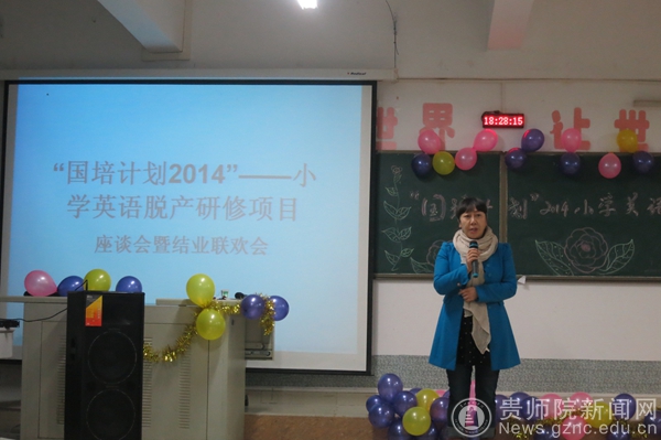 余学军教授在座谈会上对学员作了言简意赅的讲话。首先代表外国语学院感谢学校领导对国培项目的高度重视;其次感谢为了国培顺利进行而努力工作的学科相关负责人;三是感谢培训以来,全体学员的辛苦努力与积极配合。最后,她语重心长的对学员提出了三点希望:希望学员对本次培训能多提出宝贵意见,希望学员将这段时间所学到的知识技能运用到今后的工作,希望这次的培训相处能成为彼此美好的记忆。