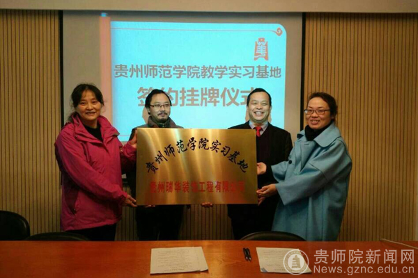 2014年11月20日上午,我校职业技术学院与贵州瑞华装饰工程有限公司举行了校外实习基地签约挂牌仪式。贵州瑞华装饰工程有限公司董事长刘宗义、郭蕊总经理,职院党委书记侯晓薇、院长沈明、副院长聂森及部分专业教师参加了此次签约挂牌仪式。