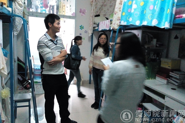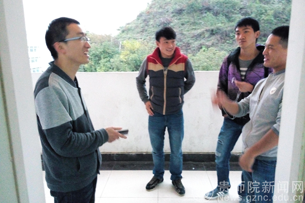 日前,数计学院根据学校的安排,积极开展“师生手拉手,育人促学风”系列活动,活动参加对象为我院全体教师,活动之一是老师们以走访学生宿舍的形式,拉近师生距离。11月13日,组织陈松良、夏顺友、梅俊雷、刘益波、欧阳建新五位教师到学生寝室看望学生,他们分别去了德园、敏园、兰园等数计学院的每一间学生寝室。询问同学们生活上的问题,例如:冬天有没有热水用,被子暖和吗?来学校习惯吗?也跟同学们讲解了英语四、六级的考试,计算机二级考试等学习问题,还跟同学们谈论了将来的就业问题等等。
