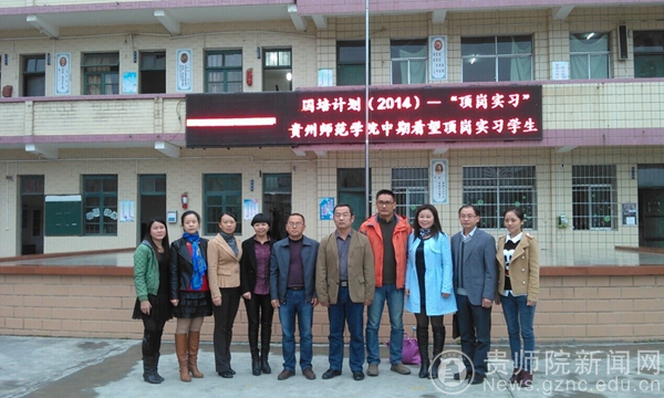 为了落实学校实习管理工作,勉励实习学生认真完成“国培计划”顶岗实习任务,教务处副处长陈业强、外国语学院党委副书记李振国和辅导员李明勇一行前往独山县看望“国培计划”顶岗实习学生。