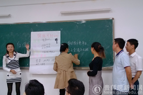 最后是风采展示篇。在这个环节中,每组成员积极踊跃地推选出组长、组歌、组名、组训,并发挥团队的智慧,设计小组组徽。新诞生的小组有快乐组合、梵净山人、三长水远、瀑布之乡、快乐三合一、最美金州、杜鹃花、苗乡侗寨、黔北兄弟、红色黔北等十个小组。大家都各具特色地展示小组风采,唱出自己的心声和欢喜。