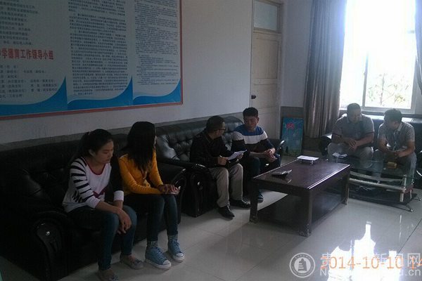 在学校和学院领导的嘱托下,刁心峰与闻水国专程来到化生学院已故学生卢全伟同学实习所在学校--木引中学看望实习生,在该校实习的几位同学对实习学校的工作安排表示满意,他们与指导老师和同学们相处融洽。木引中学龚校长对我校能派实习生支持他们的工作表示感谢,他认为几位实习生都很优秀,并对卢全伟同学的事情表示遗憾。