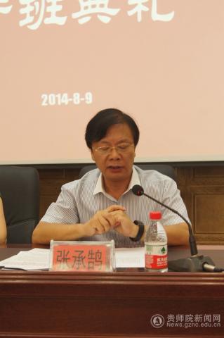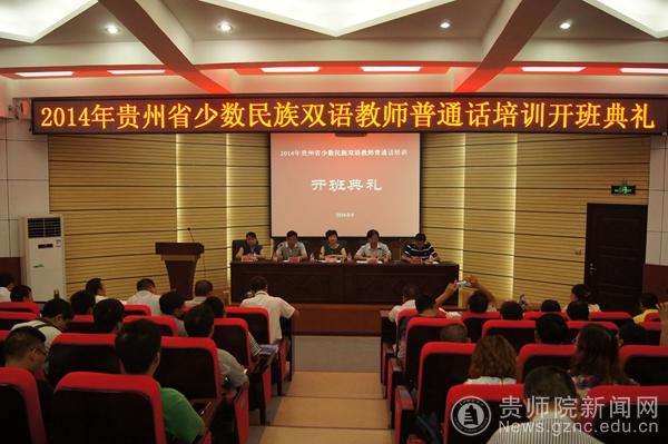 8月9日上午,2014年贵州少数民族双语教师普通话培训开班典礼在万象城网页版继续教育学院培训报告厅隆重举行,101名参训学员参加了典礼,贵州省语委办主任朱琴、省教育厅普通话测试中心主任许晓洲、万象城网页版副校长张承鹄、万象城网页版继续教育学院院长赵德肃等出席会议并作了讲话。培训学员代表也作了发言。