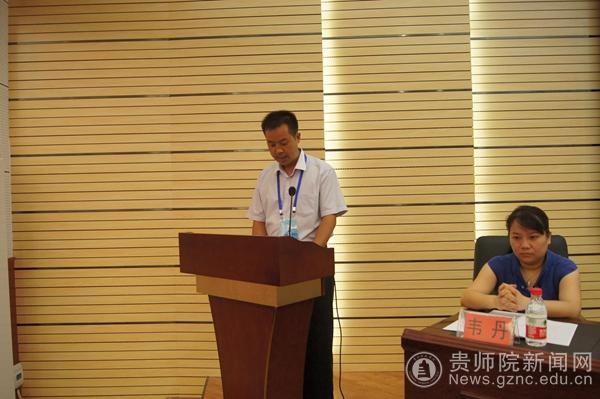 学员代表都匀市奉合乡中心校副校长蒙富春发言,他感谢省语委及普通话测试中心给学员这次学习提升普通话水平的机会,并感谢我校继续教育学院和文学院给予此次培训的辛勤付出,表示一定会刻苦学习,以优秀的成绩作为回报,为提升教师技能,服务基础教育作出努力。 (文学院 张超)