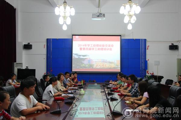 为进一步加强提升我校学生自我教育、自我管理、自我服务意识和能力,充分发挥优秀学生的榜样示范作用, 2014年6月18日下午,在第一会议室学校召开学工助理经验交流会暨第四届学工助理培训会,参加此次会议的有:学工部副部长刘红玲;学工部学生管理科邹万梅、官鹏飞;第三届(35名)、第四届(38名)学生工作助理。