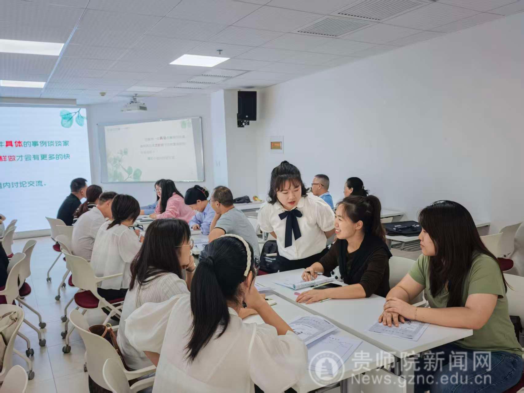 本次培训围绕“破解课程建设实践痛点、锻造育人骨干队伍、夯实基础教育高质量发展根基”的目标,注重“理论—案例—实操-成果”四位一体化构建,为贵州基础教育高质量发展注入专业动能。培训针对小学、初中两个学段,聚焦“多彩贵州”“多彩人生”两大核心课程,分专班开展针对性教学。在培训开篇环节,任明勇以“教育强国背景下基础教育课程改革的哲学价值、核心要求、现实挑战和实践路径”为题,从教育强国建设宏观维度解读政策导向,明确课程建设的“育人坐标”。袁川以“贵州省中小学地方(校本)课程概述”为主题,围绕纲要编写、资源开发、课程设计、评价体系构建等环节,为学员搭建课程建设理论框架,为后续实操演练奠定基础。为确保培训内容“接地气,能落地”,多位专家学者结合贵州本土特色与教学实践,围绕课程建设核心内容开展授课。在“多彩贵州”学科专班中,左芳以三年级上册“民族服饰绚丽多彩”为例,示范如何将民族文化元素融入教学设计,让本土文化“活”进课堂;张桂英通过七年级“民族特色 文化繁荣”的课堂实战工作坊,指导学员掌握活化教学场域、提升课堂互动性的方法;王富林、石从灵等还分别从课程实施策略、教学观察评议精要的角度,破解地方课程“落地难、评价难”的现实问题。在“多彩人生”学科专班里,孙旭亮解读核心素养视角下课程的新修订方向;夏莉华指导基于《多彩人生地方课程纲要》的教学设计;王渝以四年级上册“我家的快乐时光”示范课为载体,开展点评研讨;张杰则通过“同课异构”模式,探索“自我探索”主题的多元授课路径。