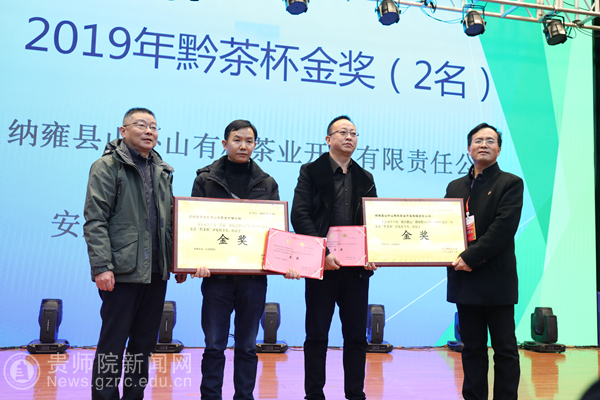 此外,在科技年会上还颁发了2019年度“黔茶杯”金、银奖,优秀论文奖、志愿者荣誉证书和为贵州省茶叶学会团体会员、本次会议“指定用茶(特级仙岭明珠、特级仙岭红尖)”贵州凤冈县仙人岭锌硒有机茶业有限公司授牌。年会期间还举办了“黔茶杯获奖茶样鉴评研讨会”、“人才与企业交流信息展示”、“2015年至2019年‘黔茶杯’获金、银奖茶叶品牌展示”、“茶艺职业技能大赛获奖茶艺展示”等活动。来自贵阳翎木心兮文化公司、栗香茶叶公司与贵州省茶叶学会的代表展示了各具特色、异彩纷呈的获奖茶艺作品《我携山水来,风带黔茶香》、《归来》。