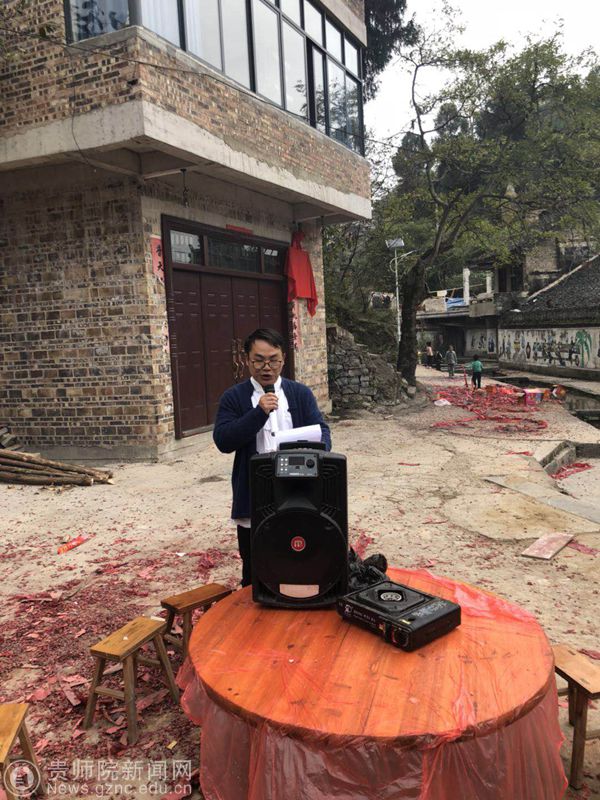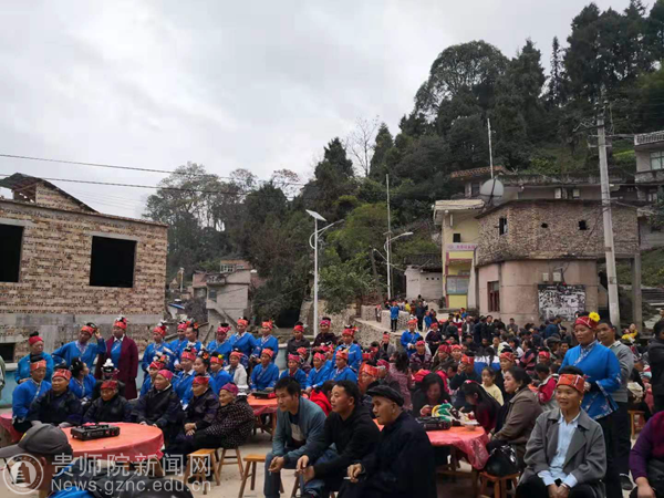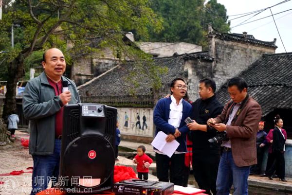 本网讯 为践行“不忘初心、牢记使命”主题教育,切实扎根基层,坚持把论文写在大地上,11月16日,我校“中国乡土社会研究中心(贵州)凉伞研究基地”揭牌仪式在施秉县双井镇双井村凉伞苗寨隆重举行。凯里市文联副主席杨秀银、黔东南州苗学会副会长兼副秘书长、凯里市作协副主席龙艳、施秉县民宗局副局长廖斌、施秉县文体广电旅游局副局长雷刚、龙里县苗学会副秘书长王玮、理事罗兰、施秉县双井镇平寨村独木龙舟协会会长杨云飞、我校贵州民族教育研究院副院长、中国乡土社会研究中心(贵州)副主任杨定玉教授、中国乡土社会研究中心(贵州)执行主任陈志永教授、盖媛瑾副教授以及双井镇部分村寨支书、主任和穿着盛装的村民近300人参加了揭牌仪式。会议由凉伞地方精英龙明开用苗汉双语主持,此次活动得到了地方政府的高度重视以及当地村民热烈欢迎。