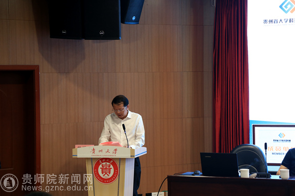 李军旗致辞。他简要介绍了我校以及贵州大学国家大学科技园的基本情况。他表示,贵州大学国家大学科技园作为贵州省大学科技园联盟理事长单位,有责任和义务致力于建立合作共赢、交流共享的平台机制,充分发挥联盟各高校的优势与特色,形成资源互补、开放协同发展的良好格局。他希望,各成员单位能够充分利用各方资源优势、区域政策优势,在国家创新体系中扮演更重要的角色,发挥更大的作用,努力开创贵州省大学科技园联盟工作的新局面,为我国创新创业与经济转型做出更大贡献。