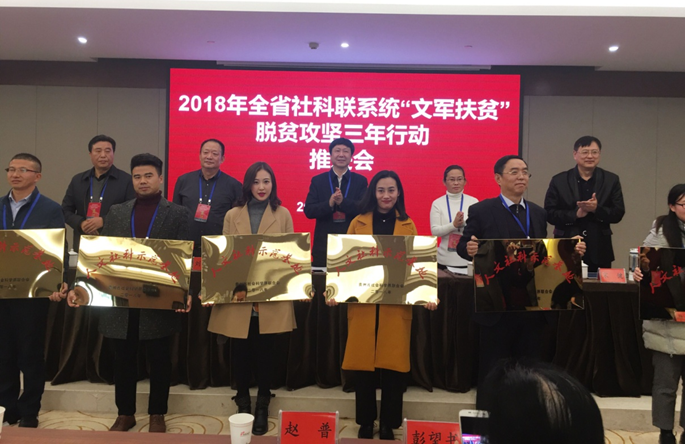 本网讯 为深入推进贵州省深度扶贫地区扶贫攻坚行动,充分发挥“文军”助推扶贫攻坚的重要作用,推动全省哲学社会科学事业在习近平新时代中国特色社会主义思想引领下创新局面、谱写新篇章。11月8日至9日,全省社科联系统“文军扶贫”脱贫攻坚三年行动推进会在中国凉都六盘水市召开。省社科联党组书记、副主席包御琨,六盘水市委常委、宣传部长、社科联主席刘睿,省社科联党组成员、副主席刘宗严,省社科联党组成员、秘书长刘丰泉,省社科联巡视员宋健等领导出席会议。各市州、省属学会(协会、研究会)、高校社科联负责人及我校科研处处长王平瑞、非物质文化遗产研究中心相关工作人员近100人参会。会议由刘宗严主持。