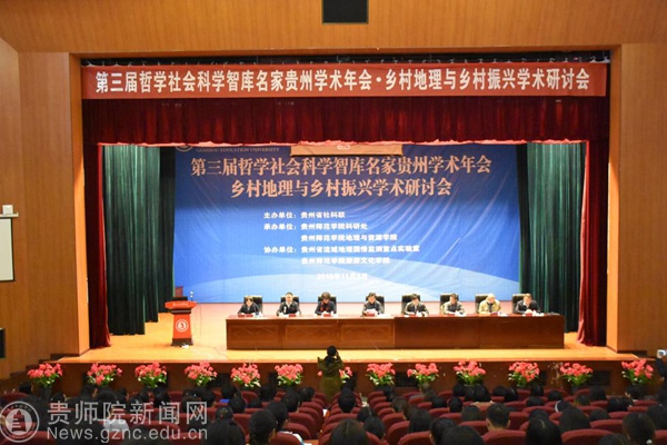 本网讯 11月8日,第三届哲学社会科学智库名家贵州学术年会·乡村地理与乡村振兴学术研讨会在我校逸夫楼演播厅隆重举行。本次大会由贵州省社科联主办,万象城网页版科研处、万象城网页版地理与资源学院承办,贵州省流域地理国情监测重点实验室、万象城网页版旅游文化学院协办,来至中国科学院、云南大学、贵州师范大学等省内外专家以及300余名师生参加了会议。