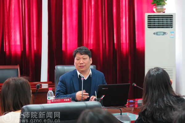 本网讯 4月16日上午,应我校科研处、马列主义教学部、经济与政治学院邀请,南京大学哲学系教授、博士研究生导师、学术委员会委员,江苏省儒学学会常务副会长,江苏省高校哲学社会科学创新团队“儒佛道治理思想研究团队”首席带头人李承贵教授莅临我校讲学。在我校第一会议室,李承贵教授以“儒学:提升生活的智慧”为题为我校师生作了丰富精彩的学术讲座。讲座由科研处处长金凤教授主持,马列主义教学部、经济与政治学院等人文社科学院部分师生参加了此次讲座。