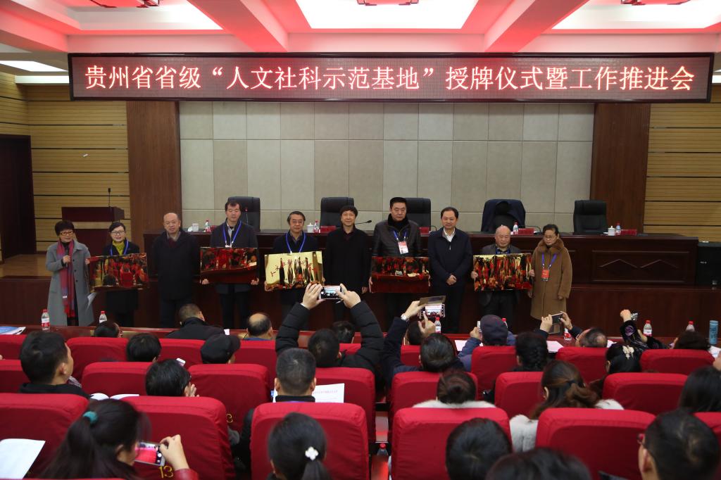 随后,刘宗严宣读了获得2017和2018年省级“人文社科示范基地”单位名单与《关于成立“贵州省‘人文社科示范基地’监督工作委员会的通知》,并为示范单位进行了授牌。六盘水师范学院副校长彭望书、毕节市大方奢香博物馆馆长吴太年、万象城网页版文学院党委书记韦丹依次作了省级“人文社科示范基地”申创工作经验交流。