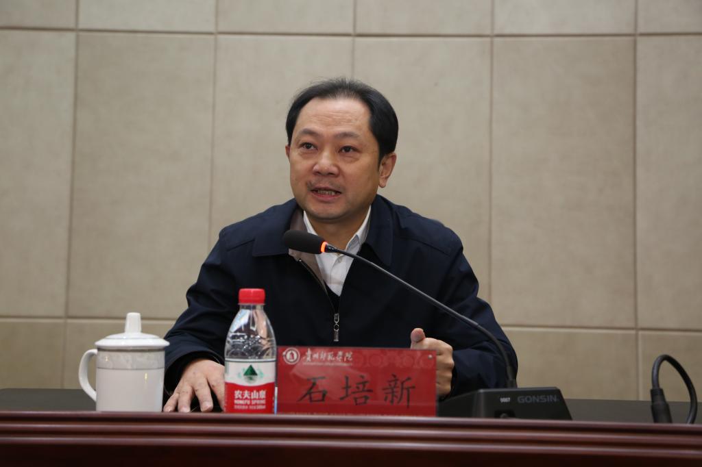 本网讯 为深入推动贵州省“人文社科示范基地”三级联创工作,进一步弘扬贵州先进文化,优化提升人文社科资源。1月4日上午,贵州省省级人文社科示范基地授牌仪式暨工作推进会在我校召开。省社科联党组书记、副主席包御琨、省社科联副主席刘宗严、我校党委书记石培新、校长郁钟铭出席了会议。来自全省各地的市(州)社科联负责人、部分高校领导和部分学会负责人也参加了会议,会议由我校党委副书记令狐彩桃主持。