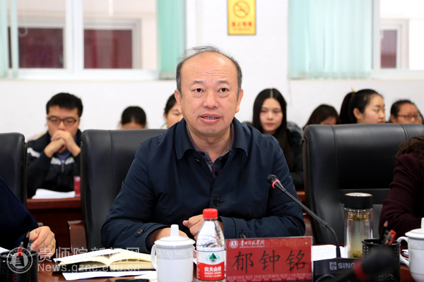 座谈会上,郁钟铭向专家组介绍了我校的基本情况,并着重介绍了我校哲学社会科学创新团队——贵州省乡村旅游资源开发与旅游扶贫研究创新团队,取得的主要成果。他指出,哲学省会科学创新团队是高校汇聚社科研究资源,开展哲学社会科学研究的重要力量。做好哲学社会科学创新团体建设研究工作,对于提升承当重大课题研究的能力与水平,促进高水平研究成果产出,服务党政机关、企事业党委决策等具有重要意义。他希望与会各位领导和专家对我校创新团队的建设工作提出宝贵意见和建议,推动我校哲学社会科学研究及新型智库建设工作迈上新台阶。