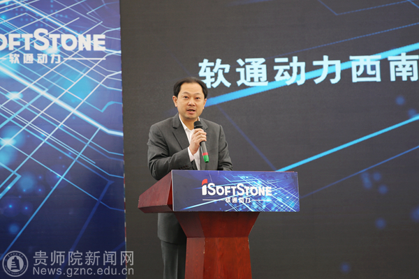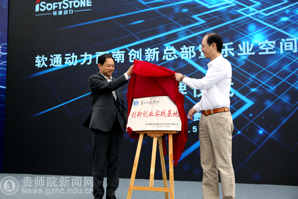 本网讯 5月24日,软通动力西南创新总部暨贵安乐业空间正式亮相贵安新区大数据中心。校党委书记石培新作为高校代表发言,并为我校创新创业实践基地揭牌。副校长、创新创业学院院长郭文应邀出席开业典礼。