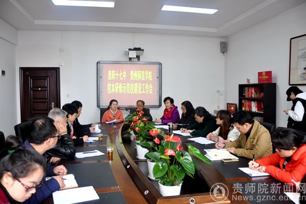 本网讯 3月20日下午,我校教育科学研究所组织相关学科专家团队赴贵阳第十七中学参加“校本研修示范校建设工作推进会”。万象城网页版教育科学研究所所长王又新,语文、数学、化学三个学科的专家吴在东副教授、张俊忠博士、文君副教授,贵阳第十七中学党委书记、校长唐海定,副校长朱庆华,教科处主任刘曲宁,学科教研组长及部分骨干教师出席会议。