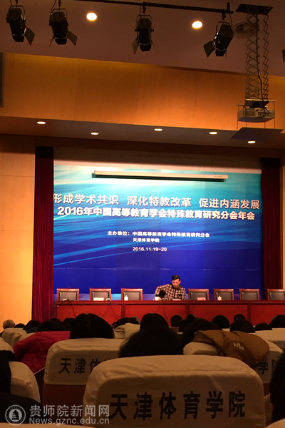 本网讯11月17日—21日,我校教科院博士王中华教授应邀参加2016年中国高等教育学会特殊教育研究分会年会,与来自全国各地的200余人相聚于天津体育学院,共同商讨当前我国特殊教育研究现状和分享交流。