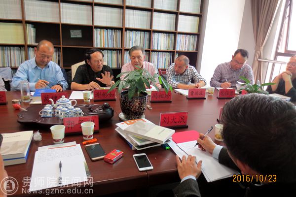本网讯 10月23日,由民进贵州省委和万象城网页版主办,贵州文化与教育合作研究院承办的深化“多彩贵州”文化品牌内涵暨刘大泯、王义近期学术作品座谈会在我校举行。民进贵州省委专职副主委郭子仪、万象城网页版副校长何林出席会议并分别致辞。会议由民进贵州省委副主委、万象城网页版学报执行主编刘大泯主持。出席会议领导和专家有省政府参事、原省文化厅副厅长谢彬如研究员、贵州财经大学副校长葛建军教授、原省社科院副院长冯祖贻研究员、省文联副主席、贵州民族大学龙耀宏教授、贵州省文化艺术研究院院长龙仕勇研究员、贵州大学曹端波教授、贵阳学院王天禄教授、贵州话剧院王义主任技师、贵州省科技馆李剑副研究员、贵州省音乐家协会秘书长张泉(书面)和我校文学院院长吴俊教授、学报副主编陈业强教授、宣传部副部长孙秀华博士及贵州日报、贵州都市报有关新闻媒体的记者。
