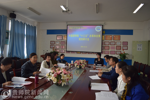 本网讯 10月13日下午,副校长何林到外国语学院调研并参加外国语学院“十三五”改革和发展规划研讨会。外国语学院党委副书记刘红玲、副院长杨秀岚、副院长罗泳、教研室主任、各专业带头人、办公室主要负责人以及教师代表等参加研讨会。