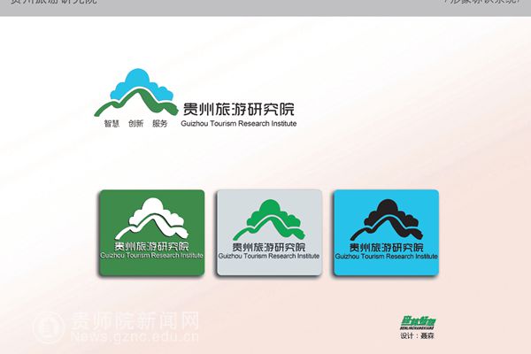 贵州旅游研究院委托聂森对贵州旅游研究院的标识系统进行创意设计。通过多次交底和探讨,确定以贵州的“山”、“水”、“民居”和贵州“生态气候”为设计元素进行创意设计。在8月底完成了标识的初稿设计,通过微信等平台多次讨论后,聂森吸取各位专家的意见并不断的修改完善,历时3个月并四易其稿后,拿出四套设计方案面向全校公布,听取各校领导及校内专家们提出的意见并进行修改完善。由徐凤增主持召集相关专家对标识系统的设计进行论证。