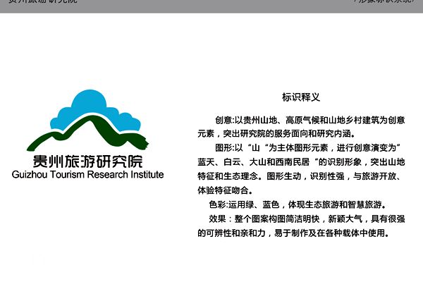 首先,由聂森对贵州旅游研究院标识系统的创意进行阐释,贵州是典型的山地省份,并处于云贵高原,具有独特的生态环境和宜人的气候。贵州的山,层峦叠嶂,秀峰林立,各具风姿;贵州的水蜿蜒于崇山峻岭,奔腾穿泻于深峡幽谷;贵州的村寨千姿百态,以风格独特的生态建筑而称誉于世。因此,以贵州的“山”、贵州的“水”、贵州的“建筑”和贵州生态气候为设计元素进行创意设计。突出研究院的内涵,彰显特征。