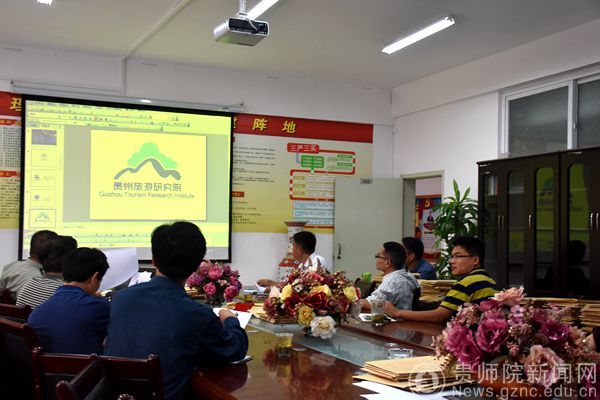 本网讯 9月27日,在地理与旅游学院会议室召开贵州旅游研究院标识系统论证会暨贵州旅游研究院第五届山地旅游学术研讨会,研讨会主讲人为传媒与设计学院副院长聂森,主题为“贵州旅游研究院标识系统创意设计”。校长助理徐凤增和相关部门、学院负责人,以及“一体两翼”中“文化旅游翼”的主要成员参与。徐凤增主持了此次会议。