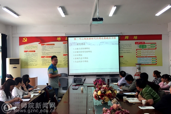 本网讯 5月4日,贵州旅游研究院在地理与旅游学院会议室举行第一届山地旅游学术研讨会。校长助理徐凤增,地理与旅游学院院长李乐京,地理与旅游学院党委书记吴亚平,文学院院长吴俊,贵州教育发展研究中心主任唐志明,经济与政治学院院长程艳萍,外国语学院院长余学军,学报编辑部副主任陈业强,经济与政治学院胡江华教授,地理与旅游学院李松教授,马福军副教授和安佑志副教授参加了此次研讨会。此外,地理与旅游学院旅游管理和地理科学等相关专业学生也参加了此次研讨会。研讨会由徐凤增主持。