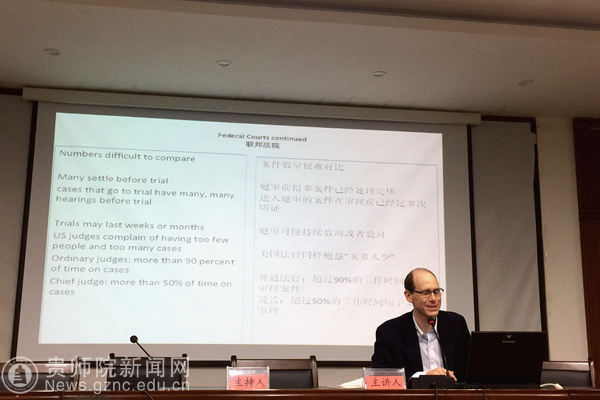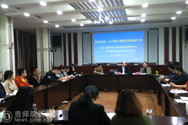 本网讯 4月12日上午,经济与政治学院教师喻琴瑶参加了由贵州省社会科学院社科院举办的“甲秀智库论坛——2016年第五次学术报告会”,暨“司法改革——从中国与美国的视角研讨会”,本次会议由美国哥伦比亚大学法学院教授、中国法研究中心主任、中国社会科学院法学研究所客座教授李本(Benjamin L.Liebman)主讲“中国司法改革的美国视角:差异和共同的挑战”。本次会议先由李本通过中英文对照介绍美国与中国的司法制度对比,李本强调:“我注重研究在法律制度逐渐完善的过程中,老百姓如何得到合理的法律保护”,随后李本与到会的专家学者展开一系列讨论。