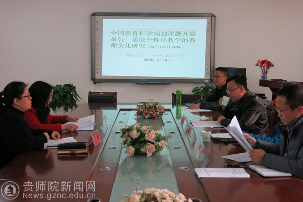 本网讯 3月14日下午,我校教科院博士王中华教授主持的全国教育科学规划课题2015年度教育部重点课题在教科院会议室进行开题。会议由教科院院长刘红教授支持,贵州师范大学教科院副院长何克教授、穆陟暄教授以及学校科研处处长金凤教授、教科院副院长黎平辉教授参加开题会。