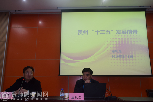 本报讯 3月9日下午,由学校科研处主办、经济与政治学院承办的学术讲座《贵州十三五发展展望》在学校道德讲堂举行,主讲人是贵州省人大原外事委员会主任、贵州省发展研究中心原党组书记、主任王礼全研究员。